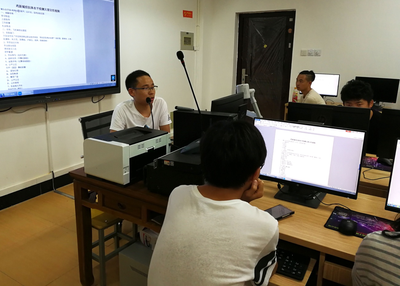 晚上7点,师生自发来到综合楼905广告设计实训室参加培训。刘武结合当前行业内后期编辑实际与此次大赛宣传工作的切实需要,分别从文案分块转化、摄像时的注意要点、Edius操作方法、画面剪辑的节奏感等方面进行讲解,分析学生练习作品中存在的不足,加深学生们对于后期剪辑方法的认识。