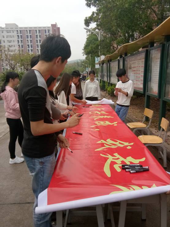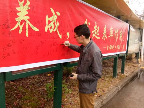 为全面贯彻落实创建文明校园,提升学生文明素养,由自动化工程系组织部主办的“文明行为养成,我起表率作用”主题签名活动于4月26日中午在三四号公寓楼宣传栏前举办。院党委副书记陈洪尧、院团委副书记李霞、系主任谢金生、党支部副书记范有福等领导老师参加了签名活动。