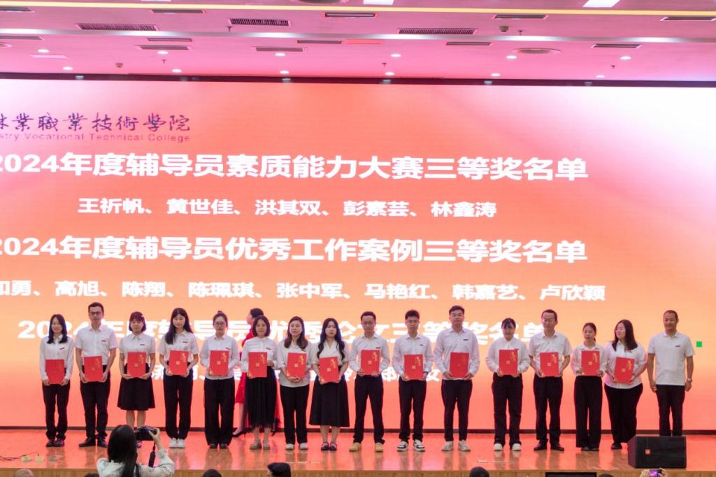 随后,进行颁奖表彰环节。学院对在2024年度辅导员素质能力大赛、辅导员优秀工作案例及辅导员优秀论文评选中获奖的经济管理系胡斌、交通工程系张铭、交通工程系林秀琴等32名辅导员进行了颁奖表彰。通过表彰,激励广大辅导员不断提升自身素质和业务能力,积极探索创新学生工作方法和路径,为学院学生工作高质量发展贡献力量。