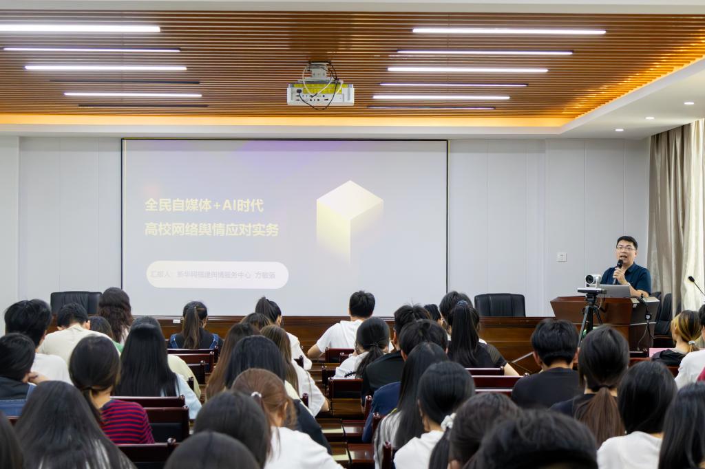 培训会邀请新华网福建舆情服务中心高级舆情分析师方敏强带来一场题为《全民自媒体+AI时代 高校网络舆情应对实务》的专题报告。方敏强结合丰富的实际案例,为与会师生全面详细地讲解了在当前全民自媒体深度发展的时代背景下,高校网络舆情监测、网络舆情研判以及网络舆情应对等各个环节。整场讲座既有理论指导,又有实践操作,凭借其丰富的经验、专业的见解、生动的阐述,为学院在复杂网络环境中网络舆情应对工作提供了宝贵的指导。