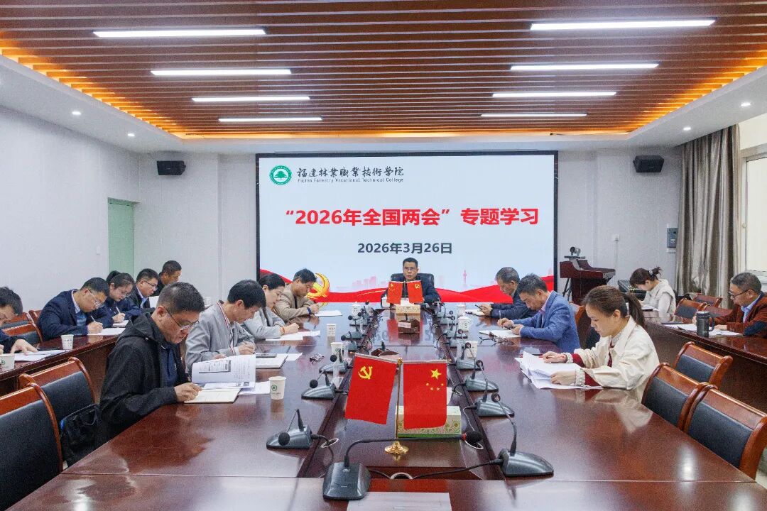 会议开展“学习贯彻2026年全国两会精神”专题学习,陈建辉书记领学习近平总书记两会“下团组”时聚焦的重点工作、“十五五”规划纲要对教育作出的重要部署。他强调,一要坚持铸魂育人,深入实施“新时代立德树人工程”。坚持不懈用习近平新时代中国特色社会主义思想铸魂育人,深入推进“大思政课”建设,深入实施素质教育,坚持“五育并举”教育理念,培养德智体美劳全面发展的林业技术技能人才。二要聚焦提质培优,全面提升职业学校办学能力。深化产教融合,打造特色鲜明的林业专业集群。抓住“推动职业教育本科与专业学位教育融合贯通”政策机遇,谋划建设升格本科层次职业学校,提升学院办学治校能力。三要弘扬教育家精神,着力打造高水平“双师型”教师队伍。实施“双师型”教师培养计划,完善教师评价激励机制,破除“五唯”倾向,突出教书育人实绩和林业技术技能贡献,营造潜心育人、安心从教的良好氛围。