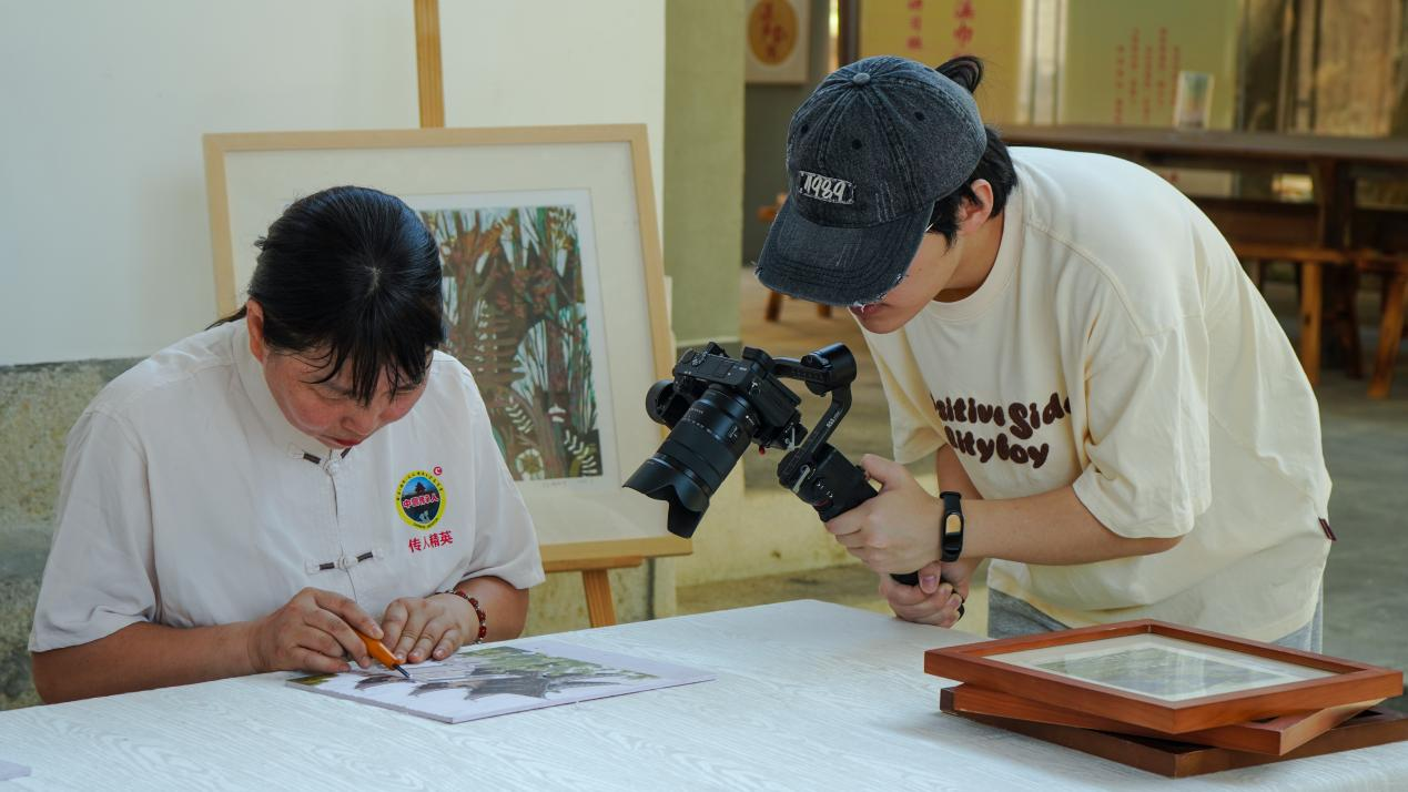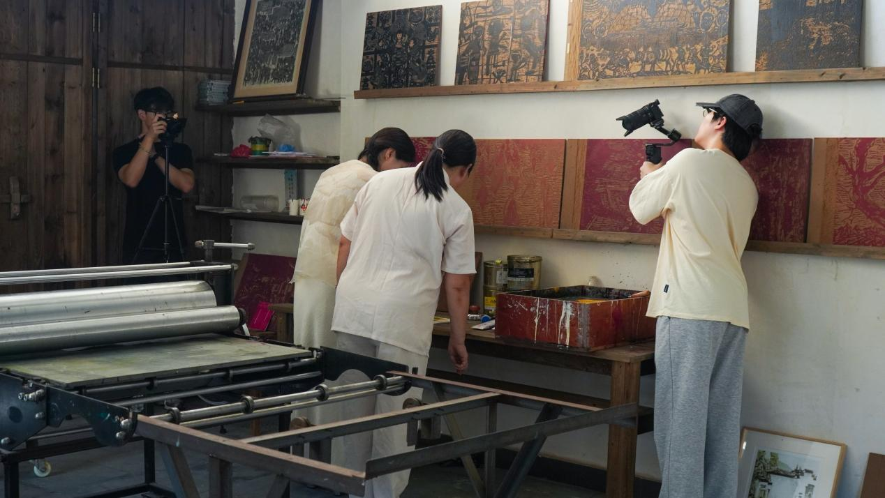 在前期对松溪文化详细调研的基础上,7月1日下午至7月2日上午,志愿服务队邀请松溪版画传承手艺人与宣传片主角前往“刀木之音”松溪版画作品展以及松溪版画生活院进行拍摄,师生们利用摄影传媒作为宣传载体,融入新时代青年力量,助力松溪文化走向新兴舞台。