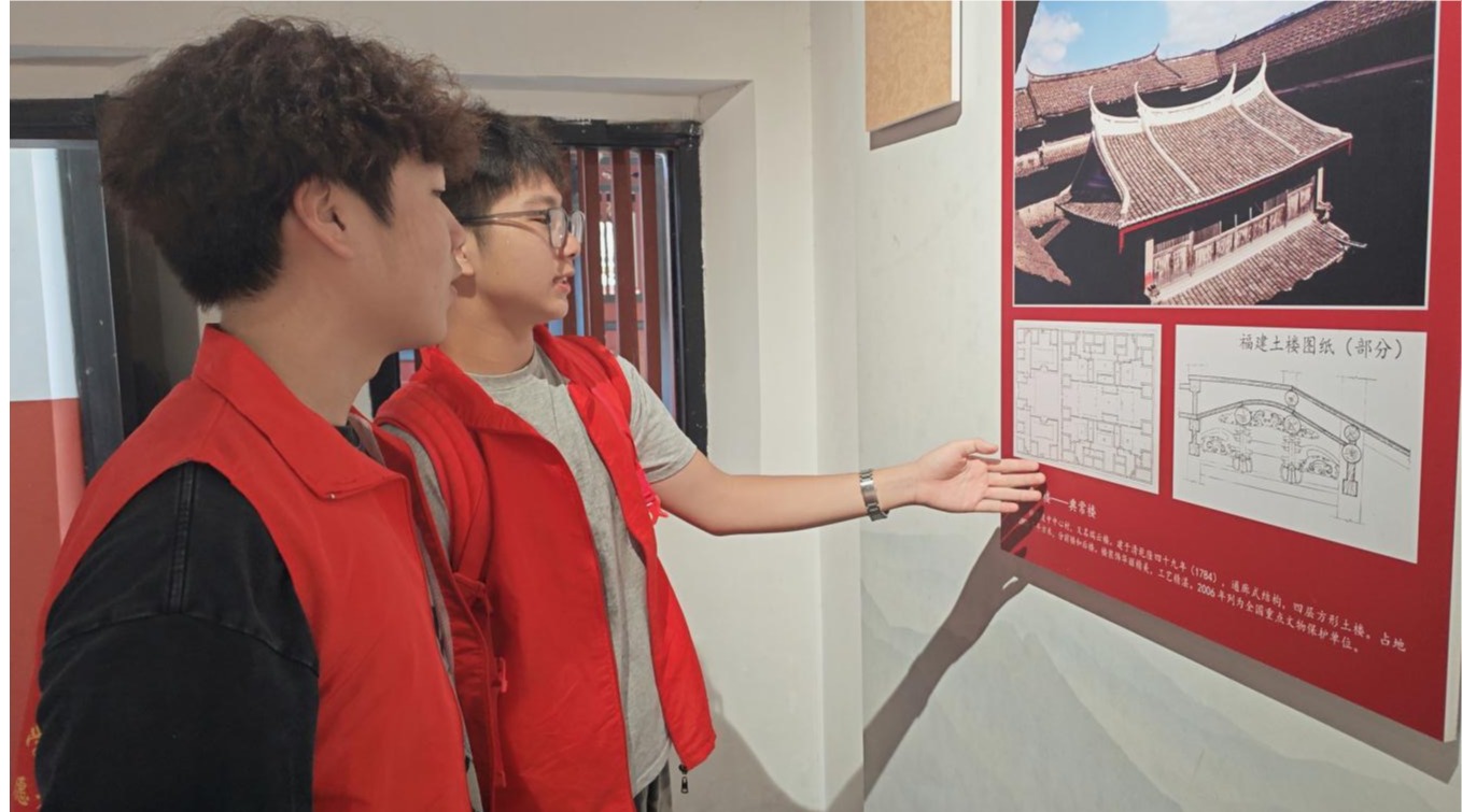 实践团成员在龙岩市博物馆展开近代建筑结构学习