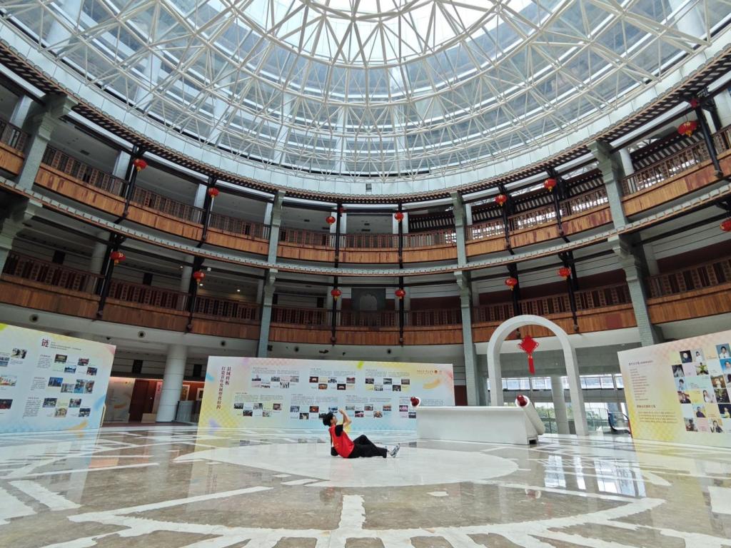 实践团成员在龙岩市博物馆专注采集建筑影像