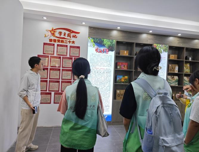 乡村要振兴,产业必振兴。实践队首先来到顺阳乡三产融合中心,全方位考察了顺阳乡“党支部+企业+农户”的产业模式,剖析产销一体化经验,为乡村产业融合发展提供新思路。随后,队员们实地走访了乡村振兴示范村——江墩村以及际下村,深入了解当地“农文旅融合”的建设成果,感悟乡村特色产业发展魅力,同时基于成员专业背景与江墩村驻村书记探讨乡村规划举措,为乡村生态建设贡献青春智慧。
