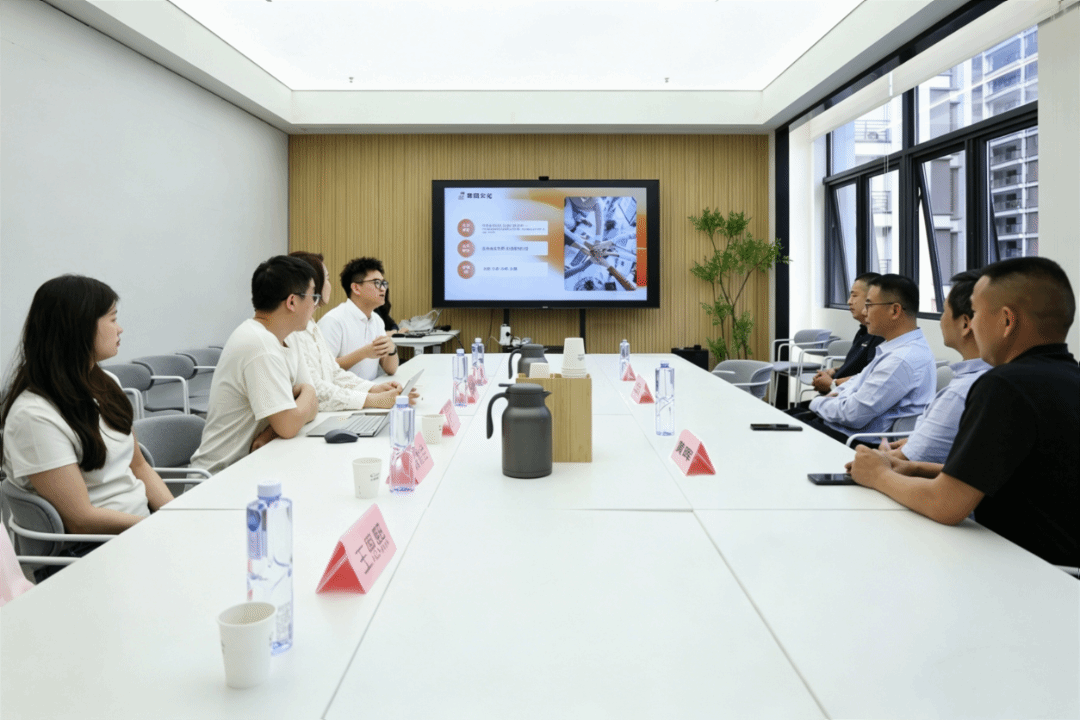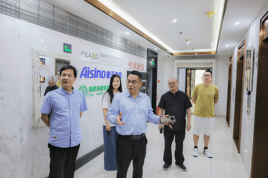 在福建国广一叶建筑装饰设计工程有限公司,董事长叶斌对陈建辉一行的到访表示热烈欢迎,并介绍公司的发展历程,表达进一步拓展和深化校企合作的意愿。作为公司副总设计师、学院计算机网络技术专业0201班校友林银,回顾了在校求学时光,希望今后能推动公司与母校在人才培养、项目合作、实习实训等方面合作。陈建辉表示,希望广大校友继续关心支持母校发展,在助力毕业生实习就业、推动校企协同育人等方面发挥更大作用。