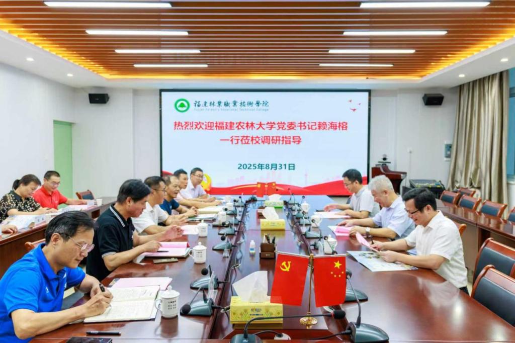 本网讯 为深入贯彻习近平总书记在福建考察时的重要讲话精神和全国教育大会精神,推进高等教育和职业教育融合发展,8月31日,福建农林大学党委书记赖海榕、党政办主任黄毅军、发展规划处处长范水生等一行3人莅临我院考察交流指导。学院党政领导班子成员及党政办公室、人事处(教师工作部)、教务处、科研与交流合作处、继续教育学院等有关部门负责同志参加座谈交流。