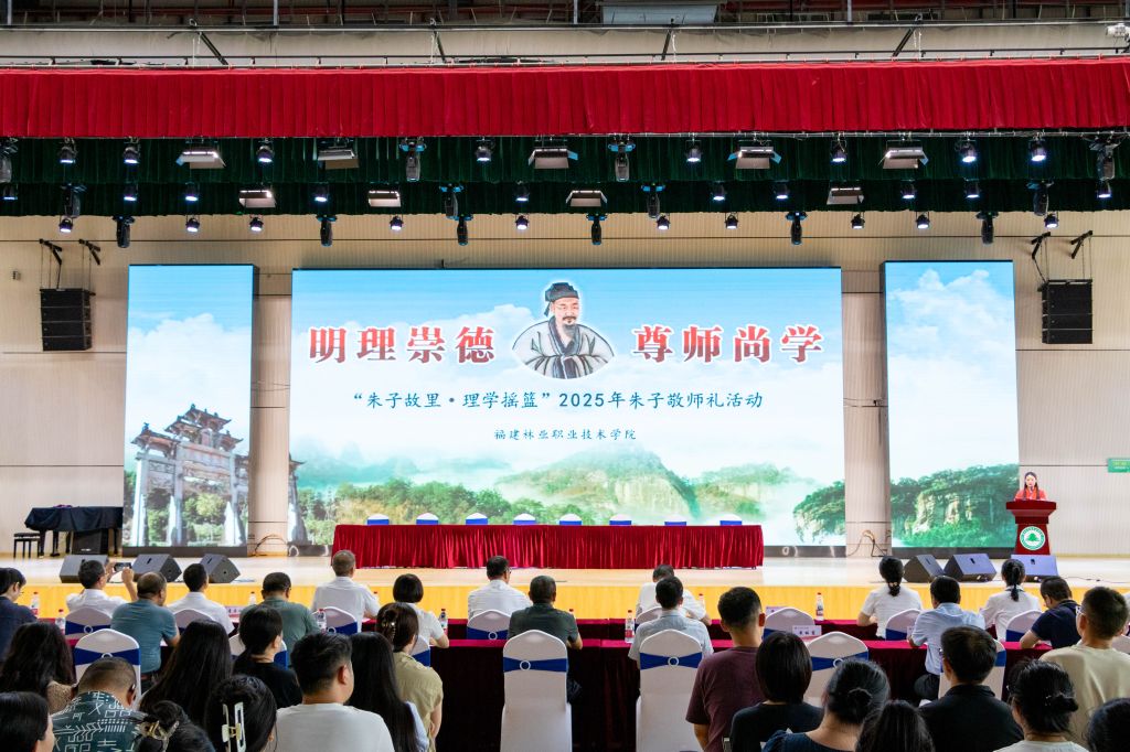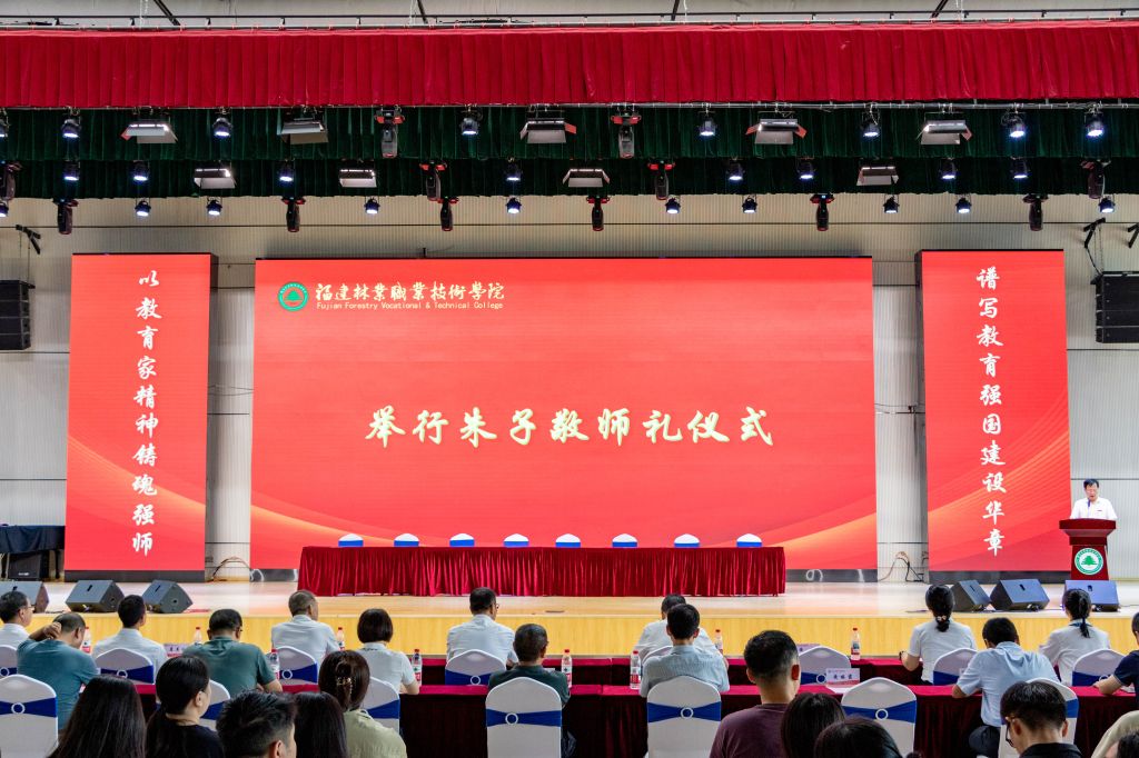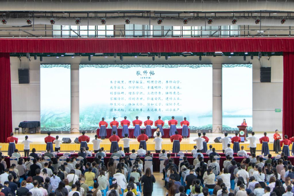 本网讯 9月10日是我国第41个教师节,今年的教师节主题是“以教育家精神铸魂强师,谱写教育强国建设华章”。为在校园内营造尊师重教的浓厚氛围,迎接第41个教师节,9月9日下午,学院在江南体育馆举行庆祝第41个教师节暨表彰大会,举行朱子敬师礼仪式,向退休老教师致以美好祝福,对新入职教师表示热烈欢迎,颁发新聘高级职称聘书,表彰先进,激励全体教职工以教育家精神铸魂凝心聚力、再启新程。