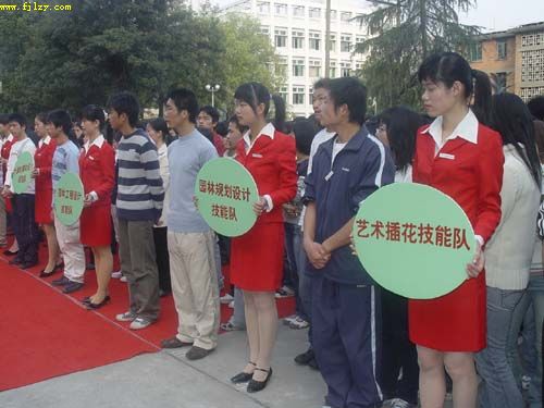 艺术插花、园林规划设计、园林工程设计、计算机辅助设计、组织培养接种、导线测量、树种识别、中餐宴会摆台、网页制作、数据库应用系统开发、工程测量、市政工程预算软件开发、会计务实操作、会计电算化操作等14支技能竞赛代表队踏着整齐的步伐先后步入会场。本次技能竞赛由四个系的03级同学志愿报名参加,有近360人参赛,历时9天。