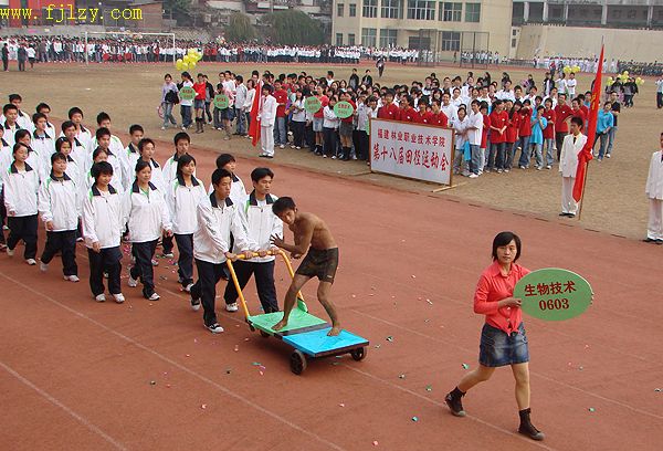 16日上午的开幕式隆重而热烈,八时整,南平市体育场,彩旗飞舞,人头攒动。学院党委书记徐志荣,党委副书记兼纪委书记刘明、副院长章志勇出席开幕式。学院党委书记徐志荣致开幕辞,当院领导宣布福建林业职业技术学院第十八届田径运动会开幕后,顿时礼花齐放,彩花缤纷。国旗队、鲜花队先后走过主席台,各系班级代表队迈开矫健的步伐,喊着嘹亮的口号,他们情绪激昂,活力四射,独特的创意队列充分展现了当代大学生的风采。 (麒生/摄影报道)