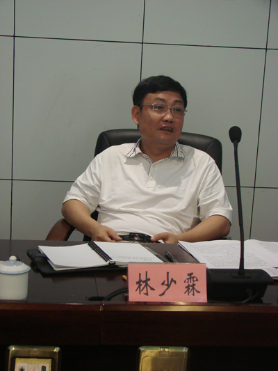 本网调 6月22日,省林业厅副厅长林少霖莅临我院检查指导工作。工作汇报会在综合楼六楼会议室举行,会议由党委书记徐志荣主持,院长李宝银代表学院党政领导汇报了学院上半年的工作情况和暑期的工作安排。林少霖副厅长听取完学院的工作汇报后,充分肯定了学院上半年取得的显著成绩,并对学院下一阶段的工作安排十分满意。