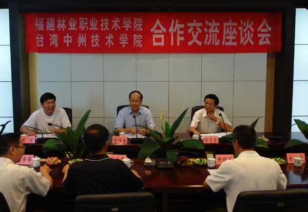 彭校长听完学院的介绍后,发表了热情洋溢的讲话。他首先代表中州技术学院的全体师生对我院表达了感谢之情。他说,福建林职院与中州技术学院是闽台教育交流与合作院校,今年6月双方签订了《学术交流及项目合作意向书》,福建林职院选派5名在校生于2009-2010学年赴台湾中州技术学院学习一年,并选派1名园艺专业教师于2009-2010学年下学期到台湾中州技术学院学习和协助管理在该校就读的所有福建学生半年。中州技术学院将全力搞好福建学生的教学、管理和服务工作。彭校长还简要地介绍了中州技术学院的办学情况,并真诚地希望闽台院校之间合作愉快,达到共创双羸。