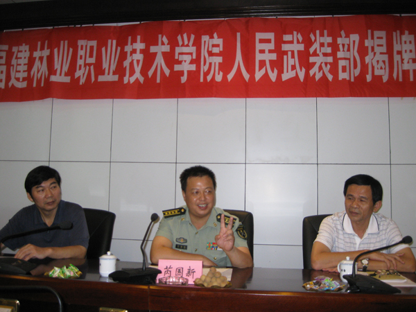 南平市军分区参谋长芮国新代表南平市军分军向我院武装部成立表示热烈的祝贺,并对我院几年来取得的成绩表示赞扬。他指出,我院一贯坚持正确的办学方向,学院在快速发展的同时心系国防,积极把武装机构和民兵组织纳入学院建设的重要内容并付诸实施,充分体现了学院讲政治、顾大局、关心支持国防建设的崇高社会责任感。他强调,武装部的成立和民兵组织建设的开展,不仅为南平市的国防力量建设注入了新的生机和活力,而且对于培养提高全院师生的国防观念,增强国防意识,激发爱国热情,自觉履行国防义务都具有十分重要的意义。