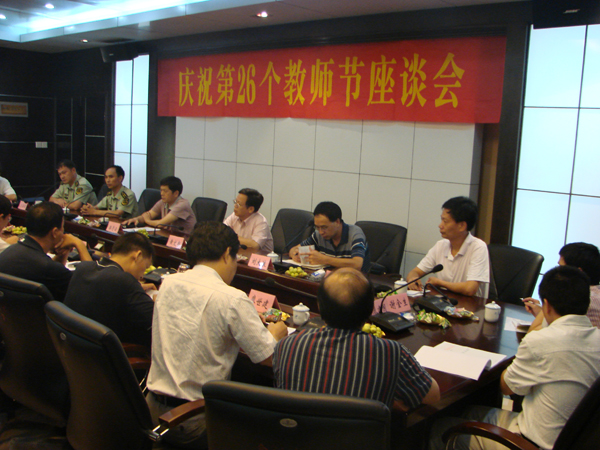 本网讯 9 月10日下午,学院在天麟校区综合楼六楼会议室举行了庆祝第26个教师节座谈会。省林业厅党组成员、纪检组长黄文书代表省林业厅向全体教职员工表示节日的亲切问候并送来慰问金。南平市林业局、延平区林业局、武警南平市森林支队领导应邀参加了座谈会并送来慰问金。