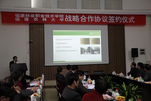 在签约仪式上,林思祖副校长和郑郁善院长分别代表福建农林大学和福建林业职业技术学院签约。签约仪式结束后,双方有关部门领导进行了座谈交流。(党办、院办)