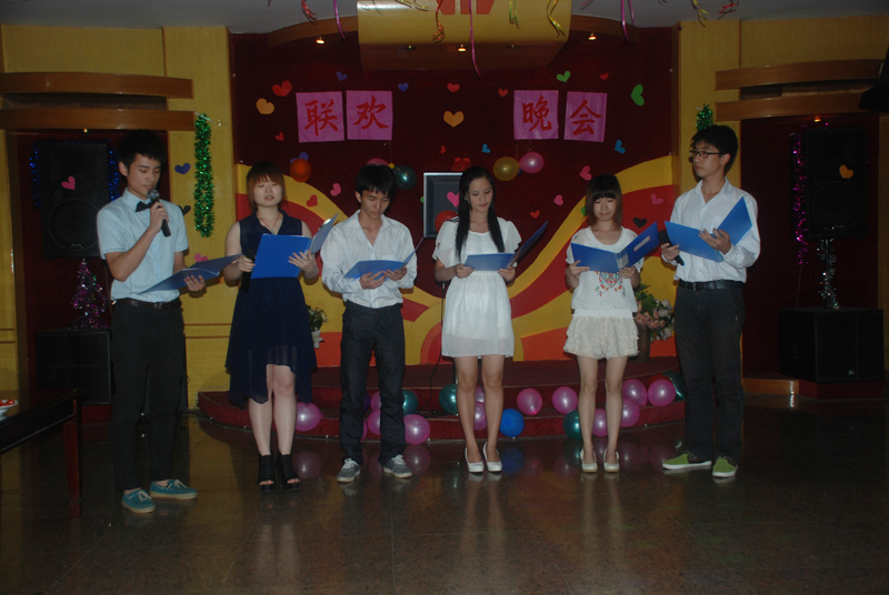 最后举行了2012届毕业生欢送晚会。晚会节目异彩份呈,既有好听的歌曲、搞笑的双簧、激昂的诗歌朗诵,还有令人捧腹的英语小品,整场晚会高潮迭起。