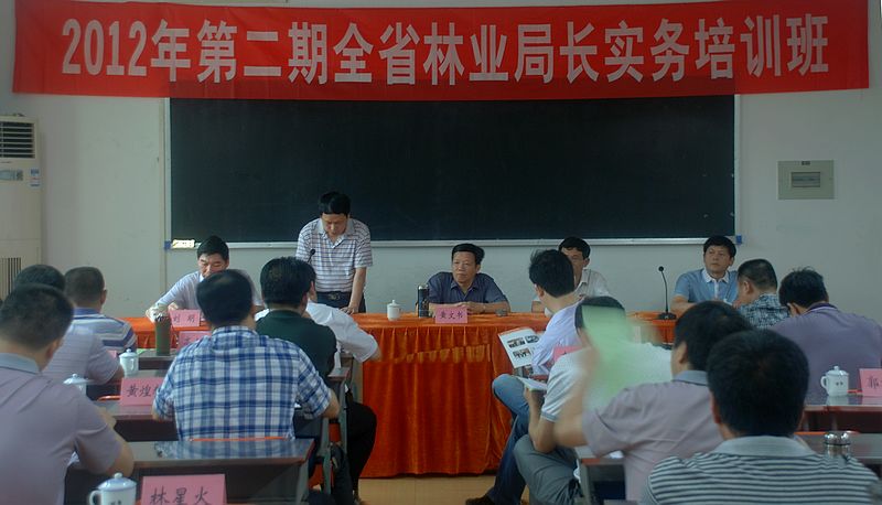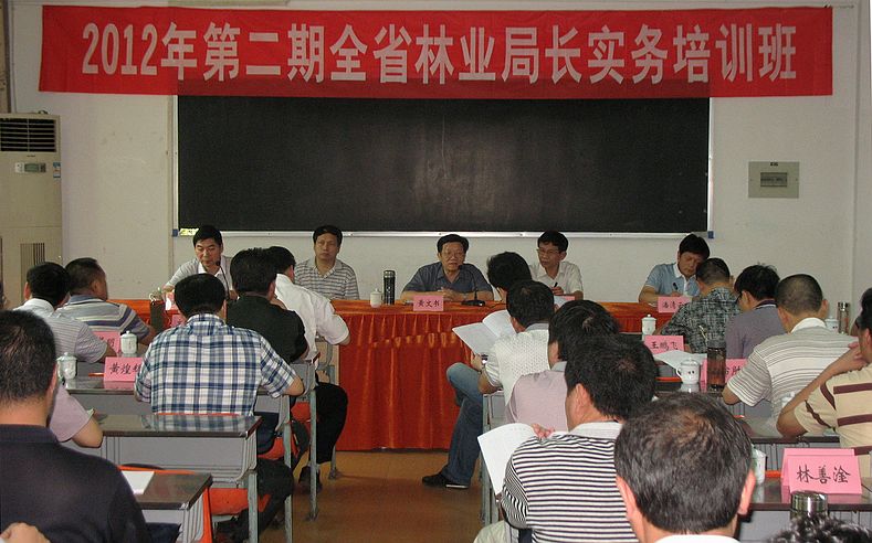 7月16日,2012年第二期全省林业局长实务培训班在我院举行。省林业厅党组成员、驻厅纪检组组长黄文书,厅人事教育处副处长潘清云,院党委书记徐志荣,院长郑郁善,党委副书记、纪委书记刘明参加了培训班开班式。开班式由刘明副书记主持,郑郁善院长代表学院致辞,潘清云副处长宣布了本期培训班的班干部组成人员名单。开班式上黄文书组长就举办培训班的目的意义、学员的学习纪律要求等作了重要讲话。来自全省35个县(市、区)林业局局长、学院正科级以上干部参加了开班式。