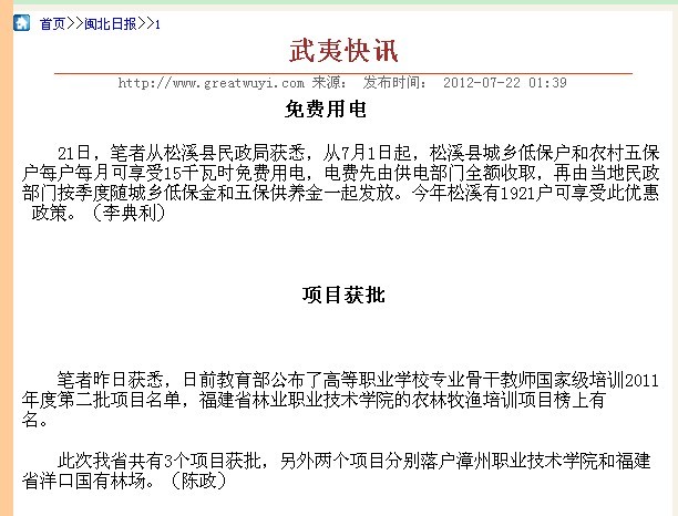 附:7月22日《闽北日报》第一版刊登我院“项目获批”信息。