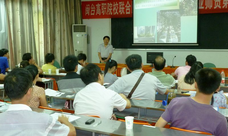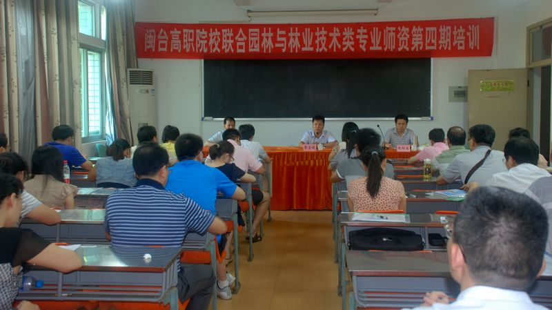 2012年7月31日,由福建省教育厅主办,我院承办的闽台合作园林技术类专业2012年第四期师资培训班在我院举行,福建省海峡两岸职业教育交流合作中心陈金建主任、院长郑郁善教授出席了开班式并作了讲话。