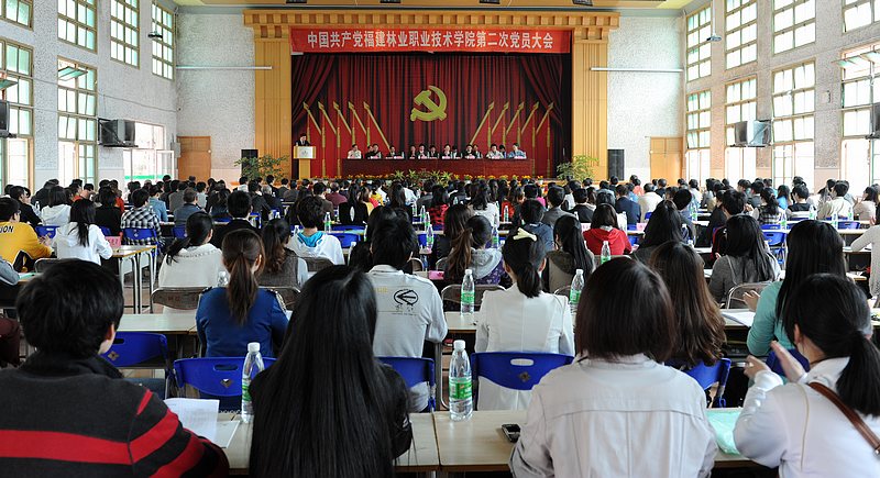 11月3日,中国共产党福建林业职业技术学院第二次党员大会在天麟校区礼堂隆重举行。应邀出席大会开幕式的嘉宾有:省林业厅党组成员、省纪委驻林业厅纪检组组长黄文书,省委教育工委统战部部长、组织部调研员詹松青,省教育工委组织部副调研员陈洪尧,省林业厅人事教育处处长张平,省林业厅直属机关党委专职副书记唐忠,省纪委驻林业厅纪检组副组长、省监察厅驻林业厅监察室主任魏谋术,南平市委教育工委常务副书记、南平市教育局局长张文铨等。全院277名党员参加了大会。学院民主党派代表、学生会主席等应邀列席了会议。大会由院党委副书记、院长郑郁善同志主持。
