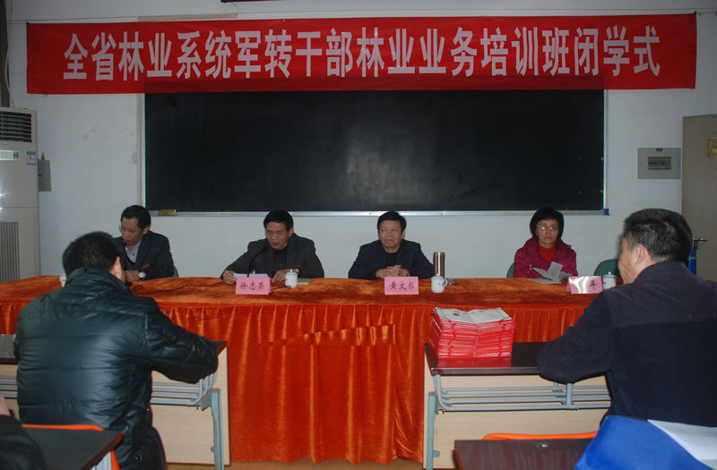 本网讯 12月28日上午8:30,省林业厅军转干培训班毕业典礼在我院天麟校区综合楼5楼会议室举行。省林业厅党组成员、纪检组长黄文书,院党委书记徐志荣,省林业厅人事教育处处长张平出席了毕业典礼。毕业典礼由副院长王振亮主持。