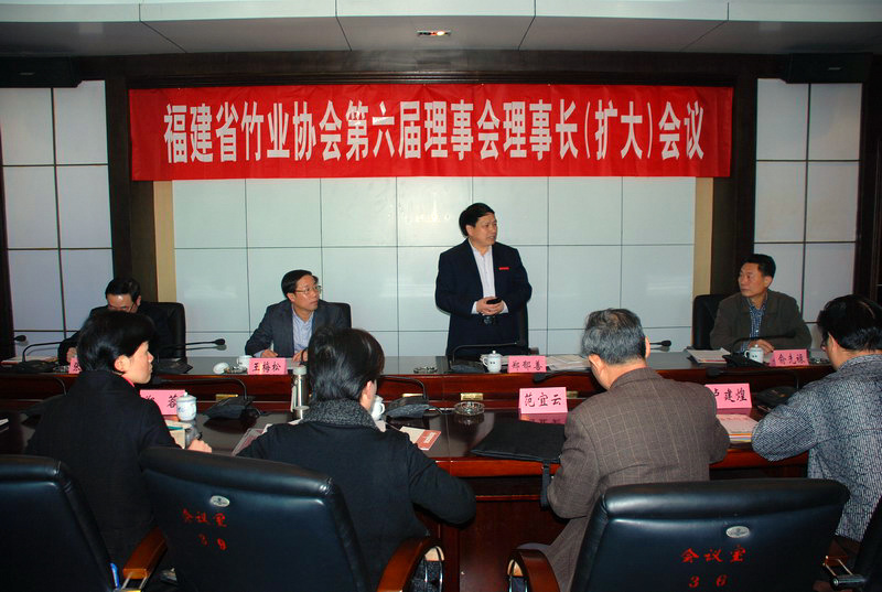 本网讯 2013年3月6日,福建省竹业协会第六届理事会理事长(扩大)会议在我院举行。省林业厅造林处处长王梅松、省竹业协会理事长、副理事长、秘书长、副秘书长以及南平、三明、龙岩市竹业协会领导参加了会议。会议由福建省竹业协会理事长、我院院长郑郁善主持。