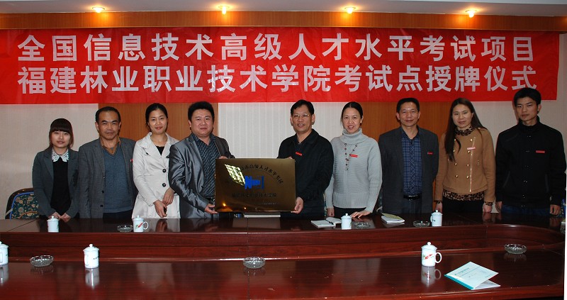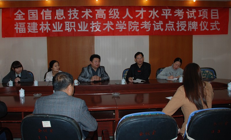 本网讯 4月10日下午,全国信息技术高级人才水平考试项目福建林业职业技术学院考试点授牌仪式在我院天麟校区3楼会议室举行。全国信息技术高级人才水平考试福建省管理中心主任林华光一行、我院副院长王振亮、教务处、成教处相关教师出席了仪式。仪式由王副院长主持。