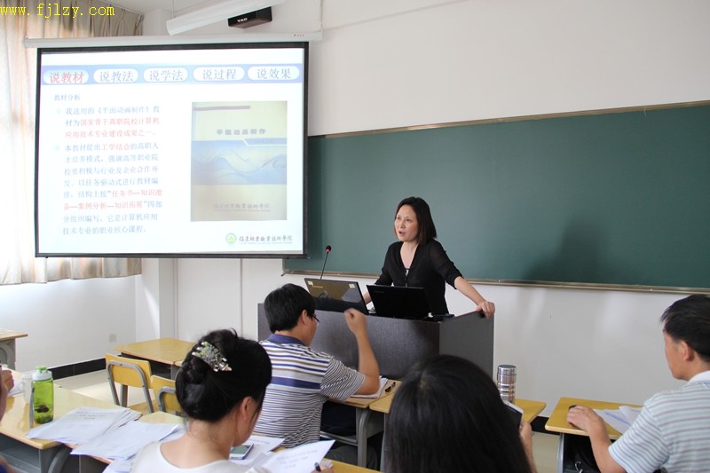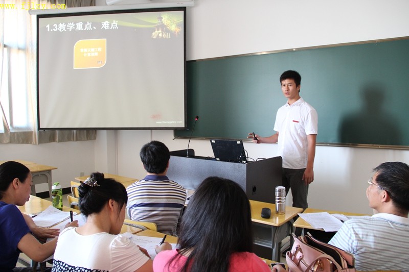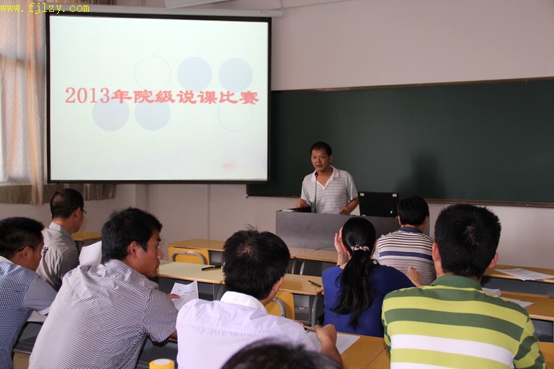 2013年说课比赛分为两个阶段:第一阶段为初赛阶段,各系认真进行动员,要求任课老师全员参加,组成以课程为核心的说课小组开展说课研讨,准备说课内容,开展说课初赛,并选拔优胜者参加全院的说课决赛;第二阶段为学院说课决赛阶段。通过各系的严格选拔,最终遴选推荐了14位优秀教师参加学院说课竞赛。
