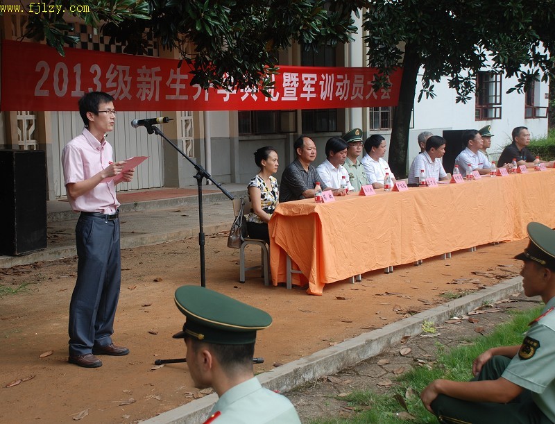 学院党政领导、中国人民武装警察部队南平市森林支队南平大队教官、各系主任、新生辅导员和2013级新生参加了大会。大会由院纪委书记章志勇主持。