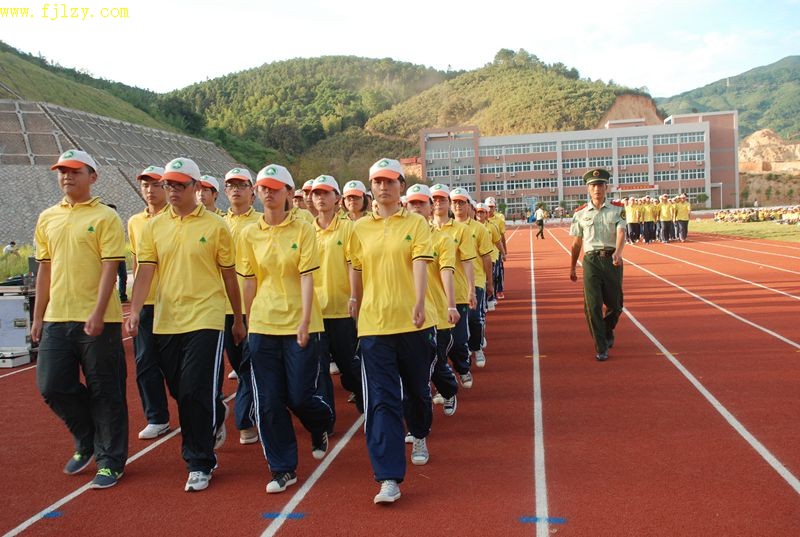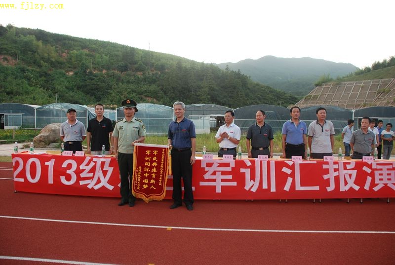 本网讯 9月13日下午,学院在江南校区田径场举行2013级新生军训汇报表演。参加此次军训汇演的有:武警部队南平市森林支队副参谋长刘德成,武警部队南平市森林支队南平大队教导员张才宝,学院纪委书记章志勇,副院长王振亮,副院长严绍裕,院长助理、学生处处长郭先根,人文社科系主任、党总支书记成榕,学生处副处长谢福荣,资源环境系党总支副书记姚平生,土木工程系党总支副书记王云彪,经济管理系党总支副书记张毅,自动化工程系办公室主任、学工组长黄立靖,担任本次军训的武警部队南平市森林支队的所有教官,2013级江南校区所有新生和天麟校区部分新生。军训汇演由学生处副处长谢福荣主持。
