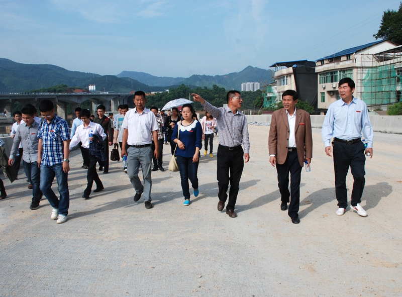 简短的介绍后,青年教工们在学院党委徐志荣书记、刘明副书记的带领下,从学院江南校区出发,徒步到南平高铁站建设工地开展参观活动。青年教工们实地参观了正在建设中的夏道大桥和高铁站项目,参观过程中,夏道大桥工程部林经理、站前广场建设施工技术人员详细地向大家介绍了建设情况,精湛的工艺、壮观的建设工程吸引了大家的眼球,也使大家对延平新城建设有了更深的了解。