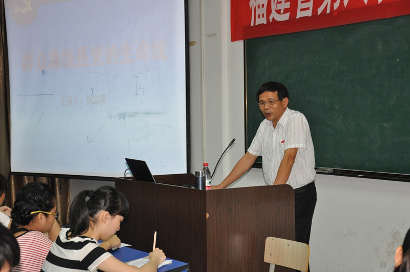 本网讯 6月4日和6月5日晚,学院党委书记徐志荣为党校第36期入党积极分子培训班学员作题为《群众路线是党的生命线》的专题讲座,讲座分天麟校区和江南校区两场。徐书记从坚持群众路线是党的政治优势、党的群众工作面临的新挑战等几个方面,对群众路线是党的生命线进行了深度的解读,并结合实际对广大学员提出了两点要求:一是用正确的世界观、人生观、价值观来树立正确的群众观;二是以为民、务实、清廉的精神来发扬和广大“敬业、吃苦、务实、进取”的天麟精神。讲座结合时政,深入浅出,得到学员们的好评。(文/图:邹小燕/黄泽宇、沈静)