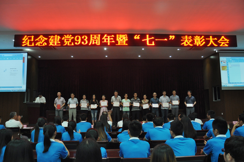 本网讯 6月30日晚,学院在江南校区第三食堂四楼会议室召开纪念建党93周年暨“七一”表彰大会。学院在家党政领导,全体师生党员,副科级以上干部,受表彰的集体代表和个人共计300余人参加了大会。院党委副书记刘明主持大会。