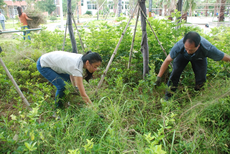 本网讯 8月31日上午8:00,为了进一步弘扬天麟精神,传播正能量,增强劳动光荣,形成“全民动员、人人参与”校园建设的良好氛围,打造健康、文明的育人环境,学院组织全院教职工参加校园义务劳动,美化校园环境。广大教职工在院领导的模范带动下,踊跃参与到劳动中来,校园内一派热火朝天的劳动场面。在院领导和教职工的齐心协力下,校园面貌焕然一新。