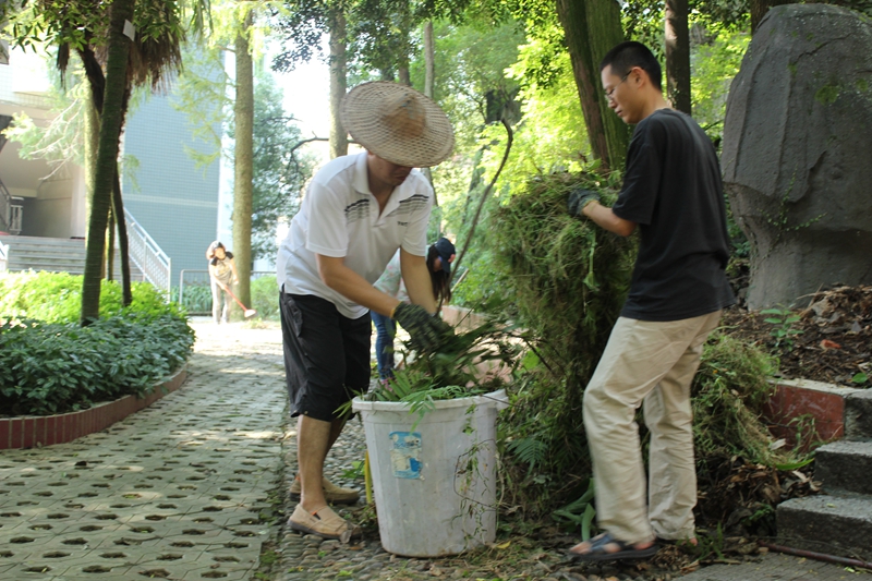 本次劳动区域,将作为各系各部门固定的卫生管护区。通过义务劳动,不仅美化、净化了校园环境,而且增强了教职工的爱校意识,为迎接第十二届省级文明学校考评贡献自己的一份力量。