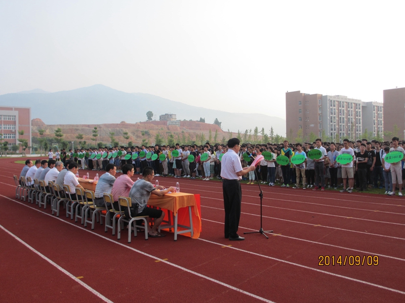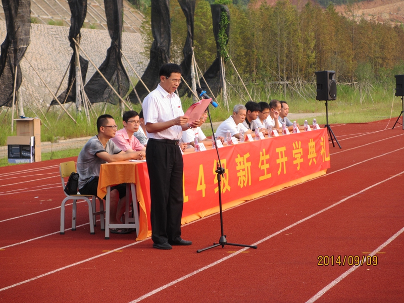 本网讯 9月9日,学院2014级新生开学典礼分别在江南校区田径场和天麟校区礼堂举行。学院党委书记徐志荣,党委副书记刘明,纪委书记章志勇,副院长王振亮、刘文开、严绍裕,院长助理郭先根以及学院各系负责人和新生辅导员出席了开学典礼。典礼由党委副书记刘明主持。