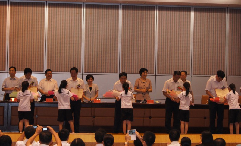 10日下午,郑院长参加了在福建会堂召开的庆祝第30个教师节暨全省教育系统先进集体和先进个人表彰大会。省领导陈桦、李红、陈绍军、薛卫民出席大会。李红主持会议。陈桦做了重要讲话。会议表彰了2014年福建省特级教师、优秀教师、先进教育工作者和教育教学成果奖,并为老教师志愿支教团成员颁发荣誉证书。我院院长郑郁善、副院长刘文开等人完成的“基于福建生态省建设的林业类高职人才培养体系构建与实践”教学成果荣获2014年福建省高等职业教育教学成果特等奖。省领导陈桦向郑郁善院长颁发了获奖证书。(院办)