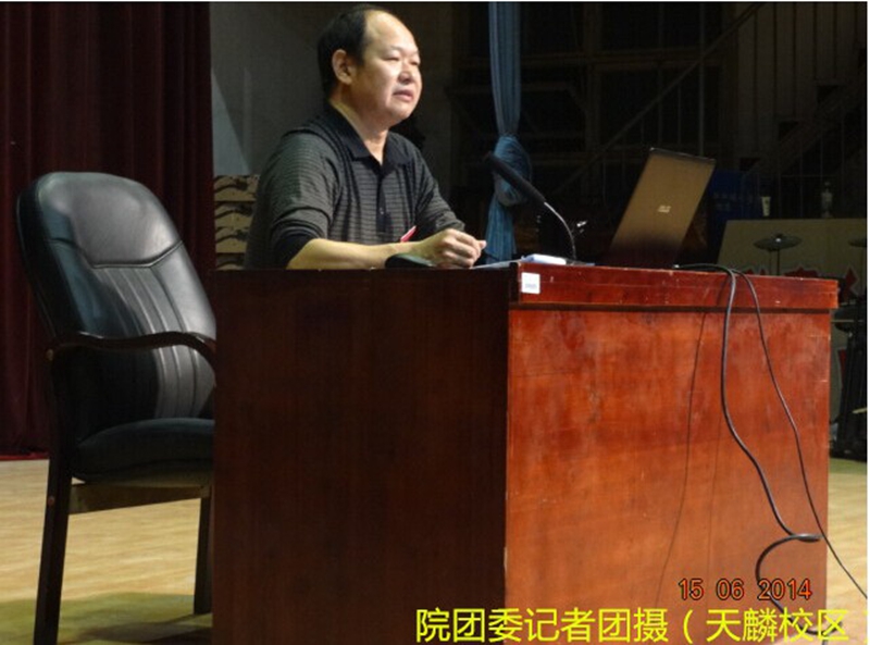 本网讯 为践行社会主义核心价值观,牢固树立爱国意识、担当意识,传递正能量。10月14日晚上七点半,由院长助理、学生处处长郭先根老师主讲的《当前国家安全形势》讲座在天麟礼堂举行,约400名师生前来现场聆听。