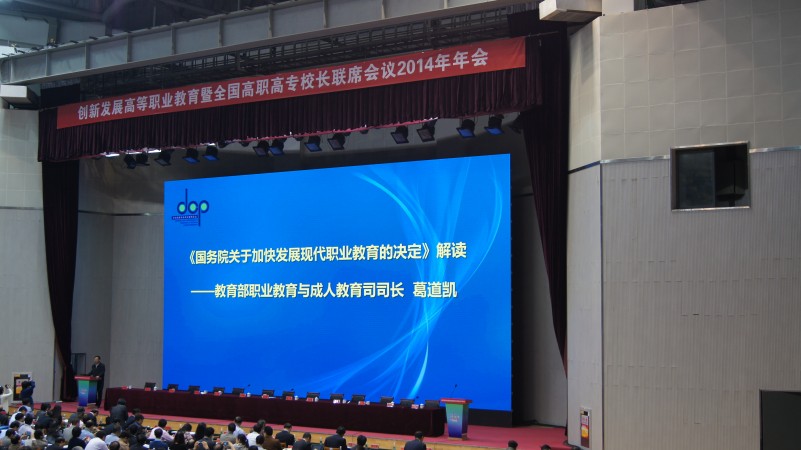 本次会议是高等职业教育战线全面贯彻落实全国职业教育工作会议精神和《国务院关于加快发展现代职业教育的决定》的重要会议。会议期间,教育部职业教育与成人教育司司长葛道凯解读了《国务院关于加快发展现代职业教育的决定》精神,教育部发展规划司副司长陈锋解读了现代职业教育体系及其总体框架的形成背景、主要内容及相关制度设计,中国畜牧业协会、石油和化工职业教育教学指导委员会、大连机床集团有限责任公司等社会团体、行业组织和企业嘉宾,分别从产业视角、企业角度参与互动对话与交流。会议开设了“激发高职院校办学活力”、“优质高等职业院校建设”、“推进职业教育信息化”等专题论坛,交流研讨新一轮职业教育改革发展中,高等职业教育在体制机制突破、办学模式创新、教育教学改革、校企深度融合、服务能力提升等方面的典型经验、实现形式和实践路径,引起了与会代表对高职教育发展的深刻思考。
