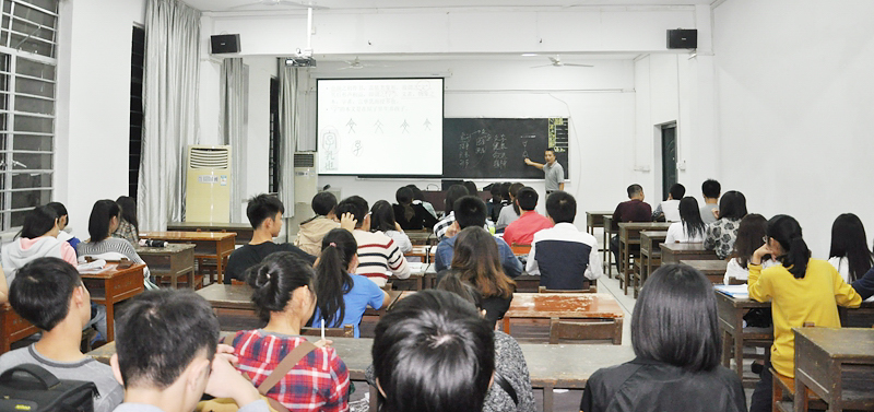 本网讯 2014年10月21日晚学习时间,人文社科系在天麟校区实训楼208室举办了“校园文化论坛”专题讲座之《文字·文学·文化》。讲座由人文社科系主任成榕主讲。