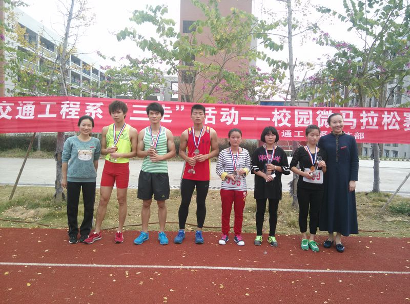 本网讯 为了更好地贯彻团中央关于高校组织开展“走下网络、走出宿舍、走向操场”主题群众性健身活动的精神,交通工程系于11月30日上午9:30在江南校区组织开展了首届校园微马拉松赛。