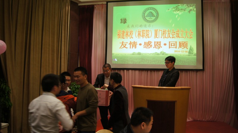 12月的鹭岛厦门,生机盎然,热情似火。12月6日晚上,厦门金威大酒店宝丽厅宾朋满座,校友云集,福建林业职业技术学院(原福建林业学校)厦门校友会成立大会在火热的氛围中隆重举行。福建林业职业技术学院党委书记徐志荣,副院长王振亮,原福建林业学校校长林威,原福建林业学校副校长、福建林业职业技术学院原副院长苏孝同,福建林业职业技术学院招生就业办公室主任黄丽霞,院长办公室副主任陈政等领导和老师,以及在厦工作的100余名校友代表参加了成立大会。会议由会计0925班校友周华杰主持。