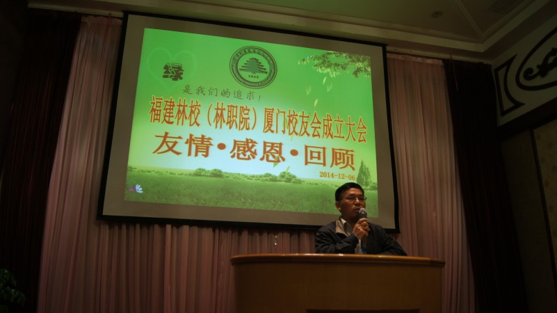 福建林业职业技术学院党委书记徐志荣代表学院致辞。徐书记首先表达了对厦门校友会成立的祝贺,同时回顾了学院的办学历程,介绍了学院的最新发展情况。他说,从北园建校,到天麟兴学,再到拓展江南,学校走过了61年光辉的办学历程。61年来,学校为国家和社会培养输送了近4万名毕业生。广大校友积极进取、艰苦创业,在各条战线上取得了辉煌的成绩,为经济建设和社会发展做出了突出贡献,也提升了学校的社会地位与声誉。各位校友怀着对母校的深厚感情,采取各种不同的形式关心、支持母校的发展。为有效整合校友资源,给各届校友搭建一个与母校联系的平台,搭建一个校友相互联络、交流与帮助的平台,学校决定2015年上半年成立校友总会,并在全省九个设区市和部分外省设立校友分会。厦门校友会是学校第一个校友分会,它的成立为其它各地组建校友分会树立了榜样,提供了借鉴。希望广大校友以此次厦门校友会成立为契机,加强联系和交流,互相关照,彼此激励,携手共进,在各自的岗位上取得更加优异的成绩;同时希望广大校友一如既往地关心、支持母校的建设与发展,共同开创母校更加美好的明天。