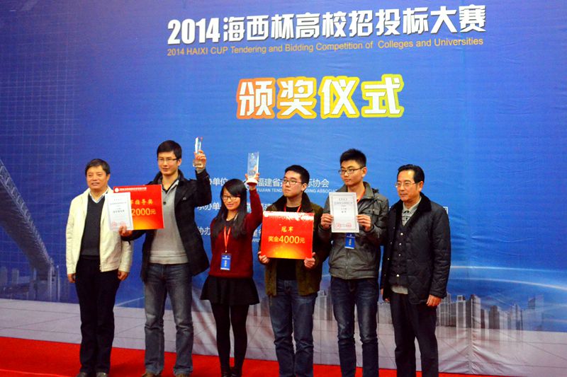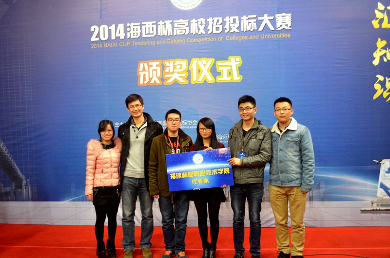 由福建省招投标协会主办,福建工程学院和厦门海迈科技股份有限公司承办的2014年“海西杯”高校招投标大赛全省总决赛,于2014年12月26日在福建工程学院如期举行。参赛的队伍有:厦门大学、福州大学、厦门理工大学、集美大学、华侨大学、福建农林大学、莆田学院等十余所本科院校以及福建林业职业技术学院、黎明职业大学、闽西职业技术学院、福建信息职业技术学院、福建水利电力职业技术学院等十余所高职院校。经过招投标知识竞赛、工程量计算、标书的制作等环节的比赛,最终由我院造价1210班康婷婷(队长)、造价1211班孙斌、造价1214班林森组成的福建林业职业技术学院代表队获得了全部参赛队伍的总成绩第一名,同时荣获高职组冠军。