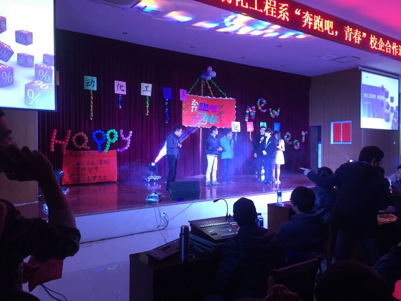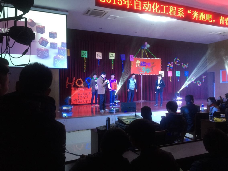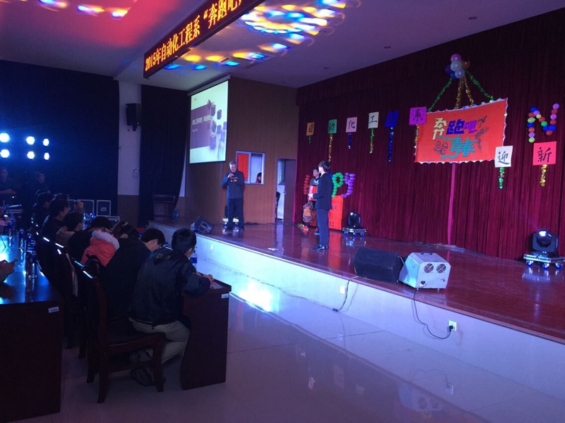 本网讯 2014年12月29号晚上七点30分,在学院江南校区报告厅自动化工程系举办了“奔跑吧,青春”校企合作迎新晚会。学院纪委书记章志勇、自动化工程系全系教师及自动化工程系13、14级全体同学观看了晚会。