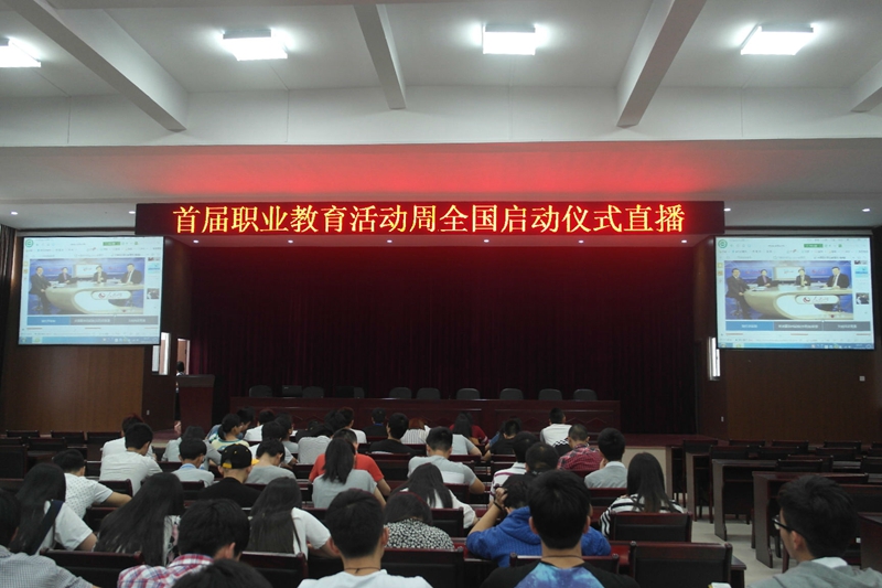 本网讯 5月10日上午10点,首届职业教育活动周全国启动仪式在中国现代职业教育网进行直播,我院学生处组织学生代表在江南校区礼堂集中收看了此次直播。