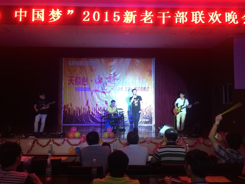 本网讯 2015年6月24日19:30,由院学生会主办,秘书处、中职部学生分会承办的“天麟心·中国梦”新老干部联欢晚会在第三食堂四楼大礼堂举行。人文社科系主任成榕、学生处副处长谢福荣、团委副主任李霞等老师出席了此次晚会。