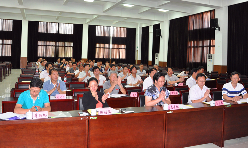 张程远副厅长代表考核组对这次领导班子和领导干部2014-2015学年度考核工作进行了部署,提出了明确要求。徐志荣书记代表领导班子作 2014-2015学年度工作总结报告,并向大会报告2014年本单位选拔任用干部工作情况。他指出,一学年来学院党政领导班子在省教育厅、省林业厅的正确领导下,以党的十八大和十八届三中、四中全会精神为指导,认真贯彻落实全国职业教育工作会议精神,根据学院确定的指导思想和工作目标,以迎接第二轮高职院校人才培养工作评估为抓手,同心同德,求真务实,顺利完成了全学年的各项工作任务。主要有以下五个方面:一是把握办学方向,坚持立德树人;二是完善工作机制,加强领导班子建设;三是加强干部队伍建设;四是突出责任主体,加强党风廉政建设;五是促进科学发展,凝心聚力创业绩。