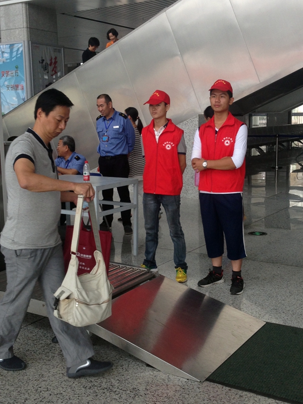 本网讯 为了丰富学生的课后活动,2015年9月19日,学院自动化工程系组织学生开展志愿者活动——服务高铁站。参加此次活动的人员分工明确,15人共设立5个服务点:检票口、进站口、出站口、安检、及售票大厅。从旅客到达北站至上车,我们的志愿者一路服务,为他们取票、答疑、提行李、引导等等。他们每一句感谢,都是对我们工作的认可。一位来自福州的旅客表示,看到林职院学生的表现,不仅仅体现了学生们的个人素质,更加体现了整个林职院的素质及文化。