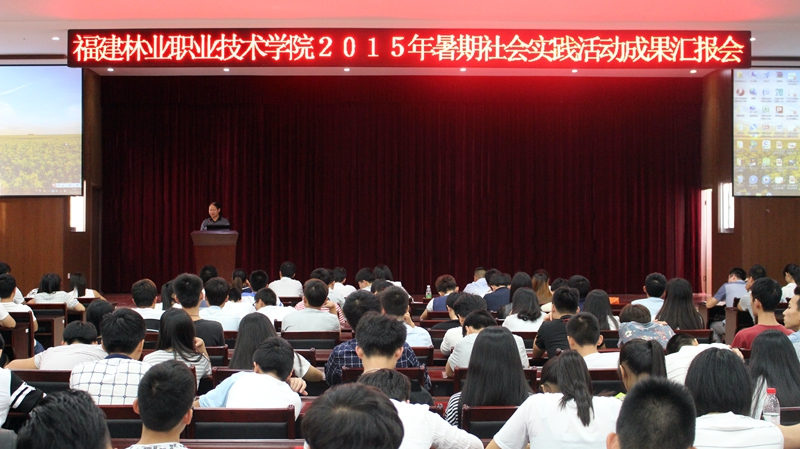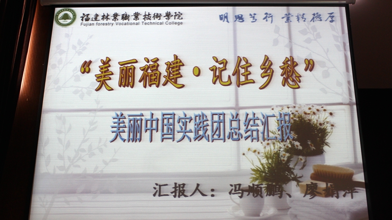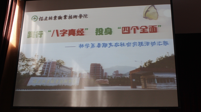 接下来,林学系践行“八字真经”投身“四个全面”科技支农小分队、院团委“礼敬中华之南平传统文化探访”小分队、建筑工程系“筑梦”志愿支教关爱服务团队、院团委绿色环保协会“美丽福建·记住乡愁” 志愿服务生态文明建设小分队、经济管理系“追寻谷文昌足迹,见证海西建设新成就”小分队、交通工程系“寻访抗战足迹,点亮青春梦想” 小分队、园林系科技支农帮扶团、自动化工程系“圆梦中国,公益我先行”实践小分队等8支院级立项的社会实践团队依次上台作成果汇报。汇报内容包括实践目的、意义、实践内容、实践开展情况、实践效果等方面进行成果展示。实践队员们通过PPT展示了实践队伍的风采及感受,并将队伍所取得的丰硕成果娓娓道来。其中,林学系践行“八字真经”投身“四个全面”科技支农小分队汇报人林业1318班郭斯贤表示:“在实践活动中,我们团队也遇到了不少难题:炎炎烈日下各种神兽在林间山头实践活动是对队员的极大考验;虽然遇到困难,可也正是这些困难却让队员们鼓起勇气,更加坚强,他们不抛弃、不放弃,精诚合作,再接再厉,坚决完成既定任务的坚定信念!通过社会实践,让我们真切地感受到了基层林业工作站的质朴与善良,甘于奉献的林业人的精神,并为之深深感动,也激发了我们对祖国和人民的热爱之情”。建筑工程系“筑梦”志愿支教关爱服务团队汇报人室内1418班李静思表示:“阳光助残、筑梦未来。南平开智学校特殊儿童和我们生活在同一片蓝天下,需要我们以及社会各届人士对他们更多的关心、支持和帮助。其他各支队伍也都展示了自己特色,展现了丰硕的社会实践成果。